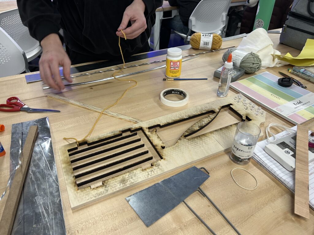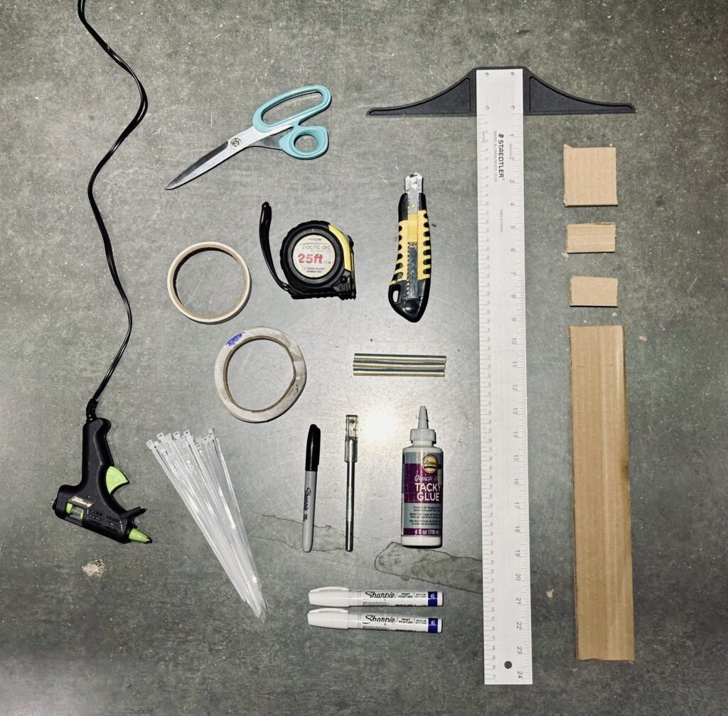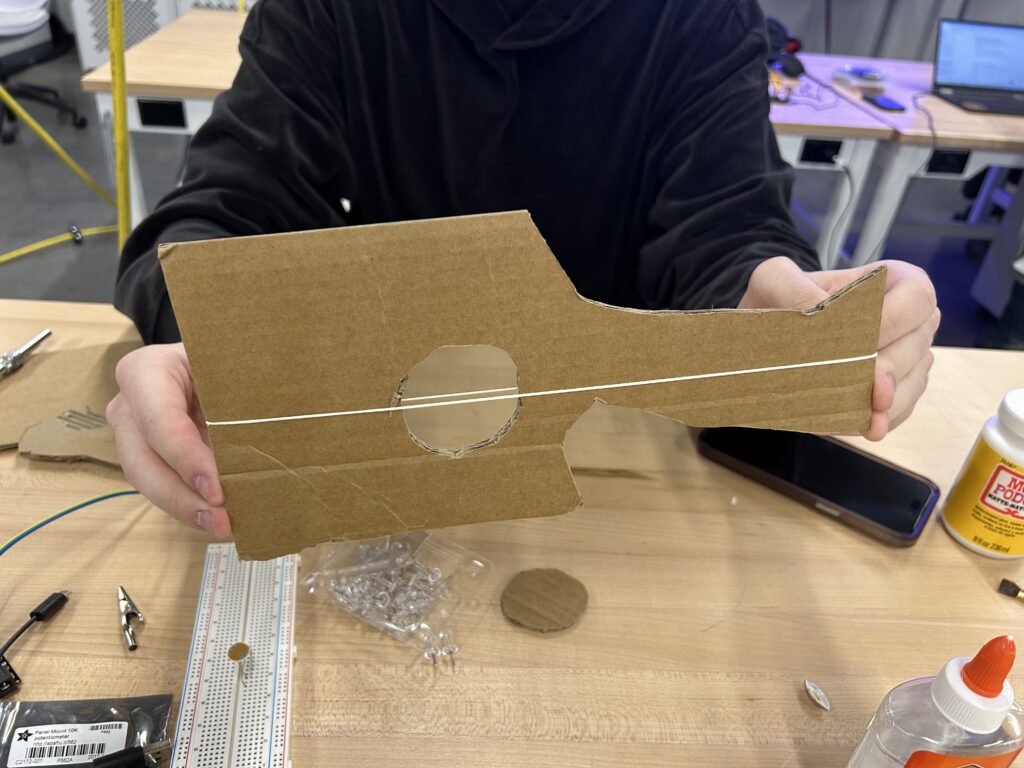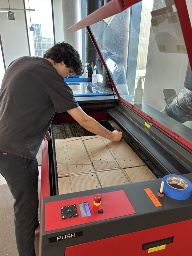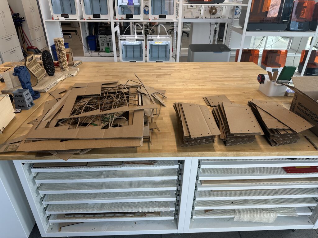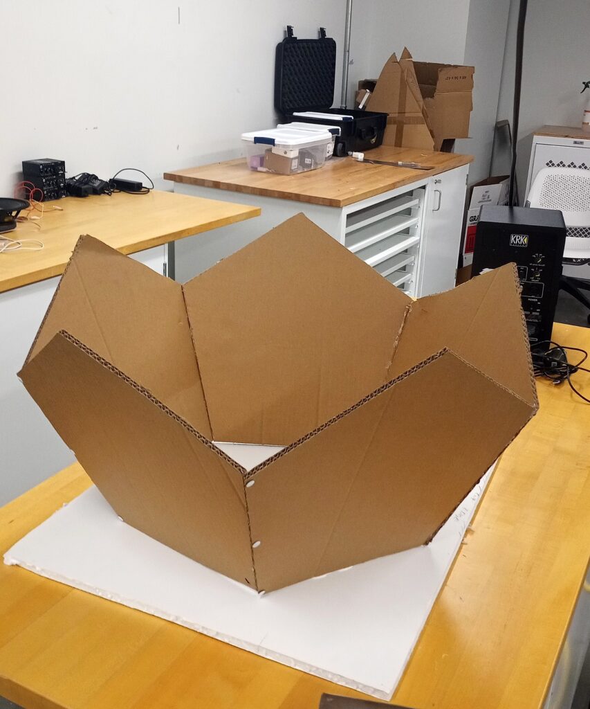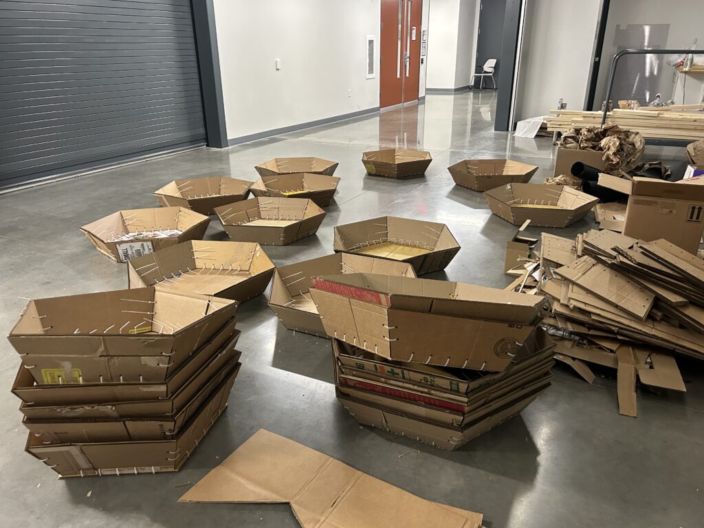 Team members experienced with laser cutting suggested using cardboard from dumpster diving as our primary material, allowing us to keep the dome sustainable. They designed the panels with small holes around the edges so everything could be zip-tied together. While the zip ties weren’t recycled, nearly everything else was, including the electronics housing, built from leftover cardboard and fabric.