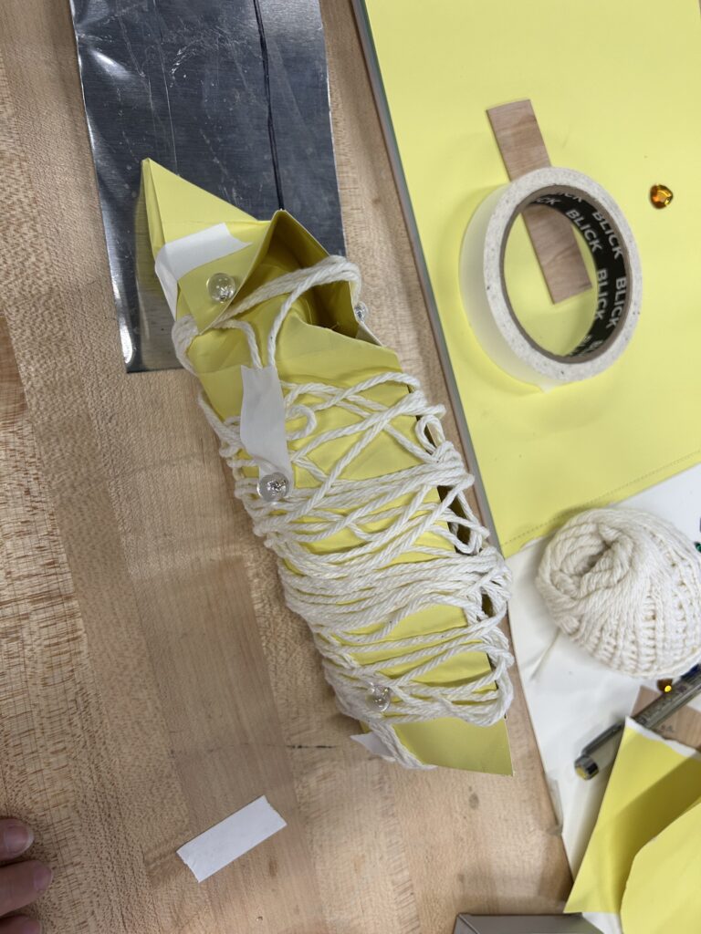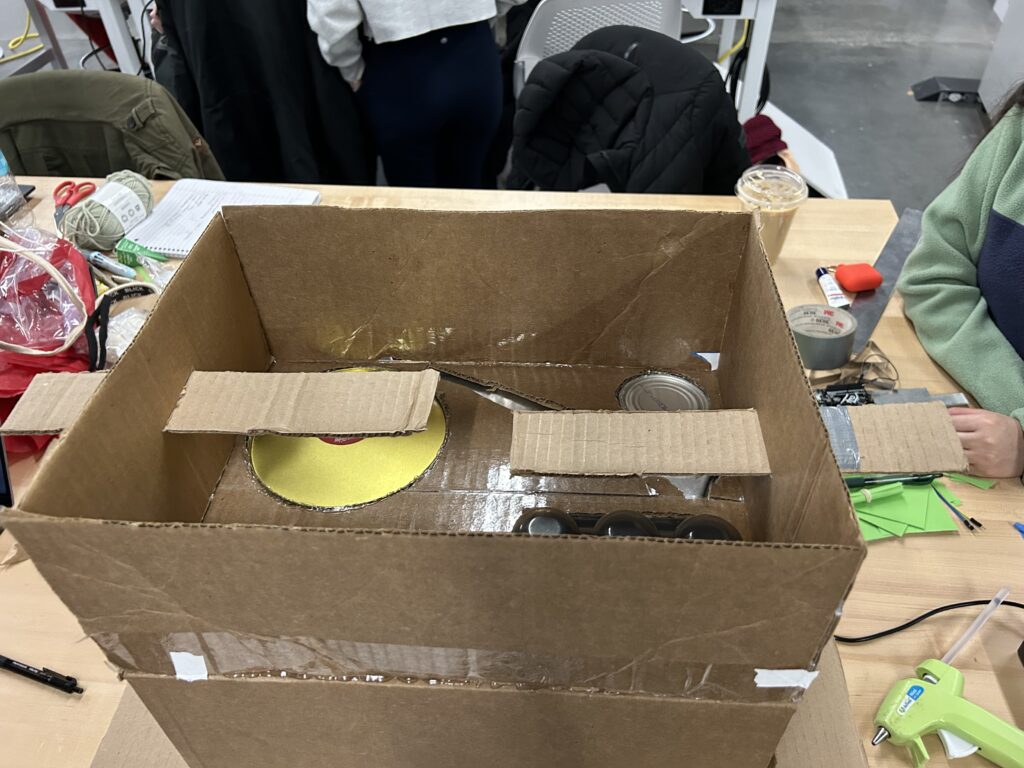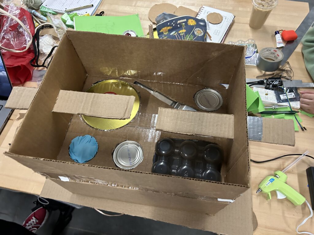Once we decided to create an auditory experience encapsulated in a dome, we dove into prototyping to address the many logistical and technical challenges. We had to consider materiality; what recycled materials could we use, and how would we cut and assemble them into a stable structure? At the same time, we began shaping the soundscape, layering custom-made audio elements to support our narrative of environmental decay. We also explored how to integrate Arduino and sensors to potentially trigger sound or light responses. We also investigated how to distort real-time noise and incorporate lighting that enhanced the atmosphere. Prototyping meant physically building, testing, and revising; only by experimenting hands-on could we understand what was practical and what best supported the project’s emotional impact.