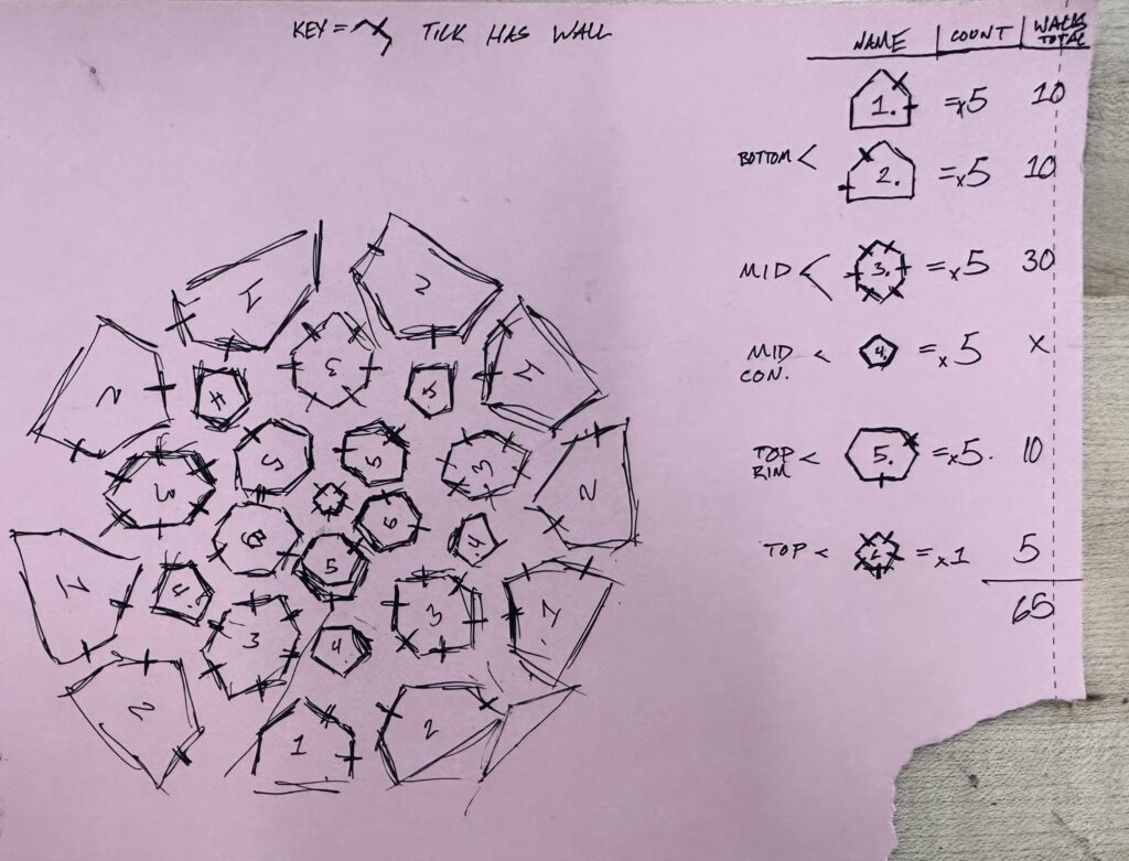 As we moved from prototyping into full construction, more pieces of our project began to fall into place. The more we built, the clearer our vision became. With the guidance of our studio professors, we refined the coding and finalized the geometry of the dome, realizing we’d need a combination of hexagons and pentagons to achieve the structure we envisioned. Due to limitations with Arduino and real-time sound distortion, we adjusted our approach, enhancing our pre-recorded soundscape to carry the full emotional weight of the experience.