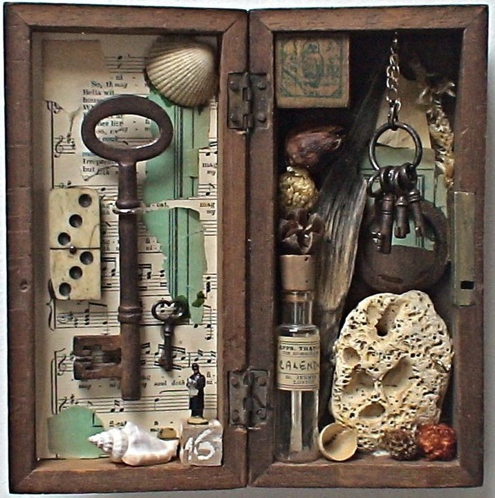 Assemblage is a form of sculpture created by assembling disparate objects, often found items, to create a new whole. His assemblages often evoke a sense of mystery and nostalgia, inviting viewers to interpret the connections between the objects in the boxes. Cornell’s art is characterized by a dreamlike quality, drawing on themes of memory, fantasy, and personal experience. Cornell’s works typically involved arranging objects in shadow boxes filled with carefully placed items like trinkets in order to create a brand new story.