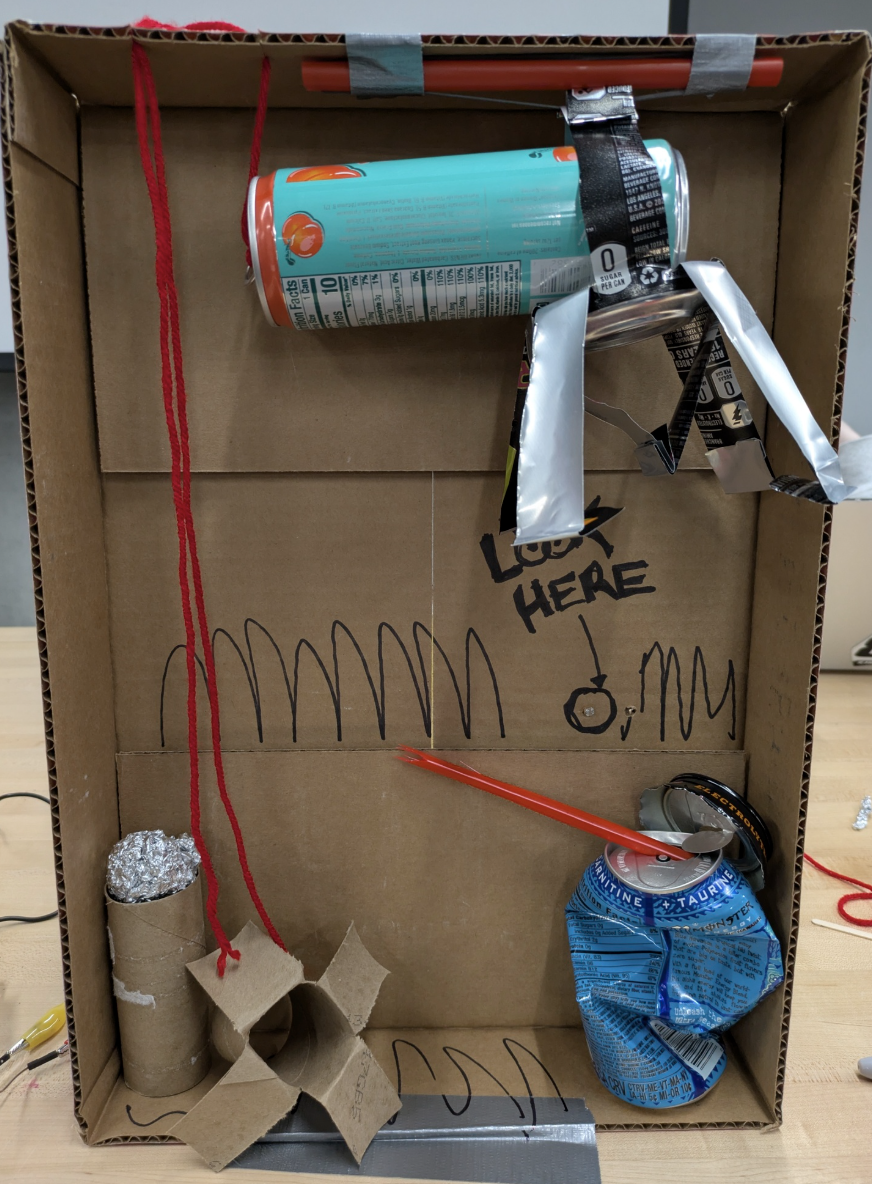 Inspiration for this project came from the classic Mouse Trap game, where we aimed to enhance the user experience by incorporating active participation, sound effects, and movement-triggered actions. We’ve designed a more complex, real-life version of the game, using interactive elements that not only engage players but also activate objects in a dynamic way—like a Rube Goldberg machine. The objective is to create an immersive experience that combines physical interaction with technology to trigger different outcomes.