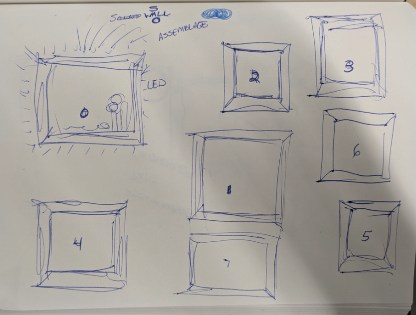 Our team explored several ideas, many inspired by Joseph Cornell. As we developed the concept, we realized the installation felt too static and disconnected, making it difficult to execute within our timeline. The interactivity of individual frames seemed isolating and lacked cohesion.